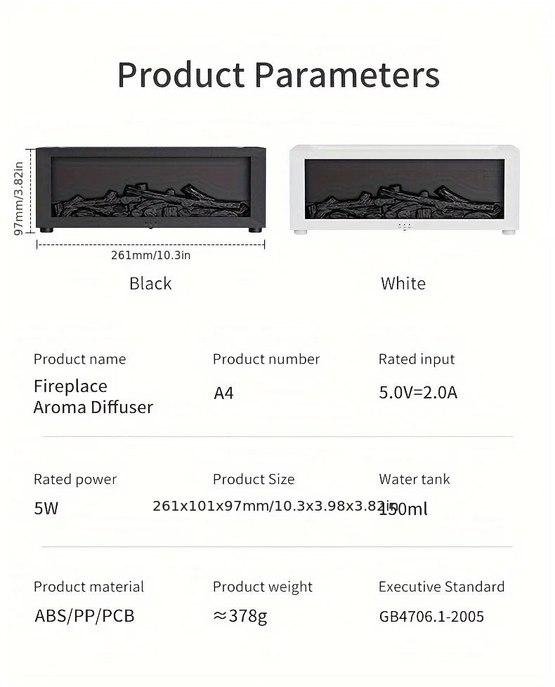 Flame Essential Oil Diffuser, 3D Flame Fireplace Aromatherapy Machine Colorful Humidifier with Remote Control, Fireplace Flame